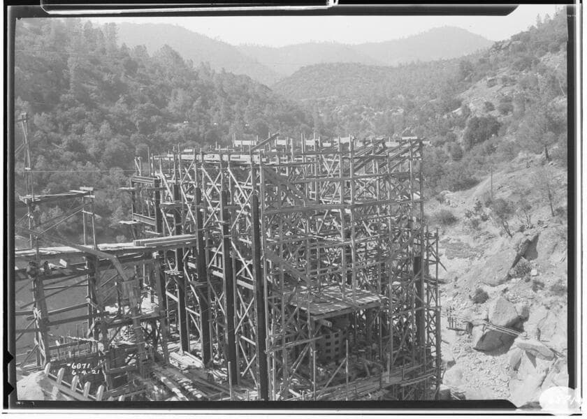 Powerhouse #8 - View of Dam 5 - [Framework being set up for the construction Dam]