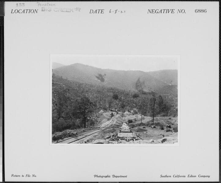 Big Creek Powerhouse 8 - Sections of penstock lying in ditch.