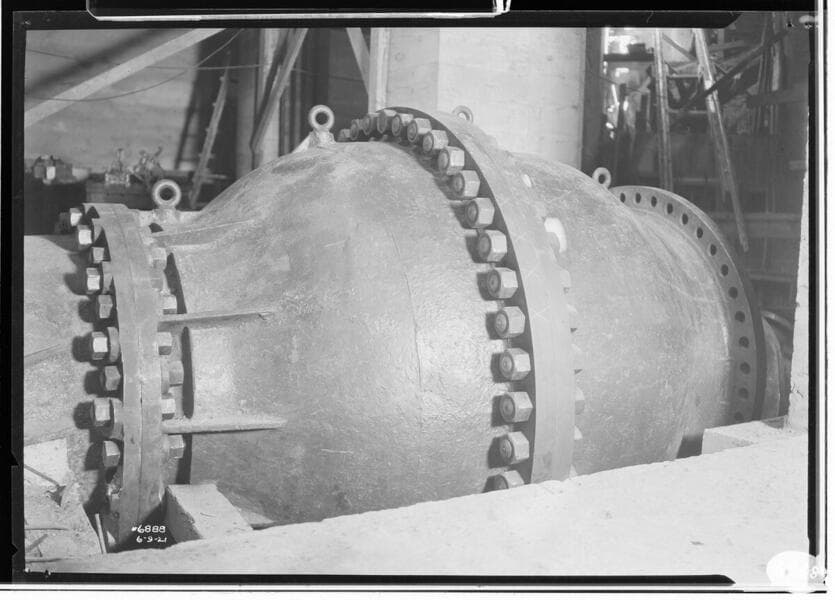 Powerhouse #8 - Johnson valve and special reinforced section of penstock in place.