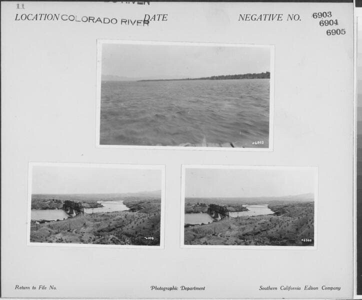 Colorado River - Two large bridges crossing Colorado River [one railroad, and one highway].