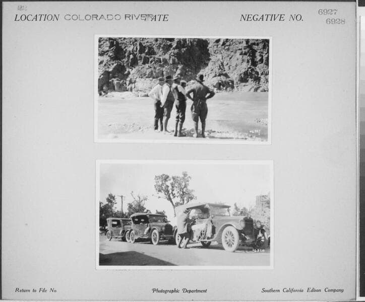 Colorado River - [View of Colorado River from riverbank] - [View of Colorado River from boat (SCE 7070) on same photocard]