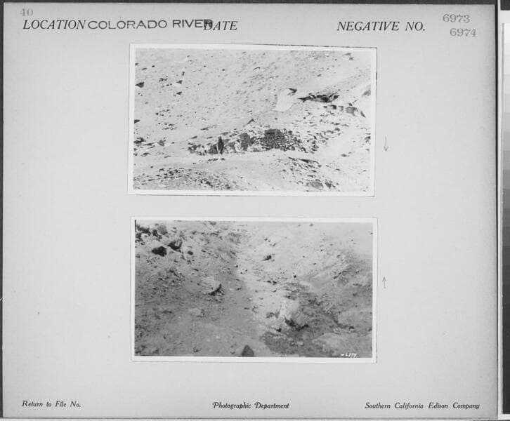 Colorado River - [Desert town with adobe buildings] - [additional shot of Colorado River from rim of canyon (SCE 7016) on same photocard]