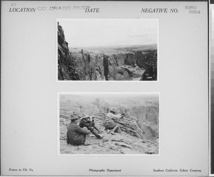 Colorado River - View from canyon rim down to Colorado River below || additional shot (SCE-6990) on same photocard.