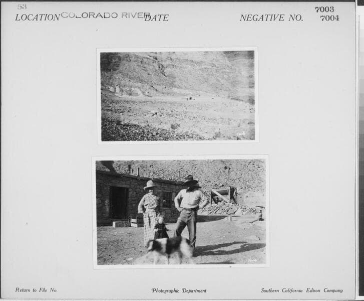 Colorado River - [Group shot of surveyors at desert campsite] - [Shot of surveyors in desert (SCE 7204) on same photocard]