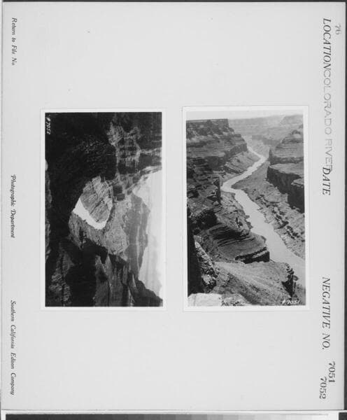 Colorado River - [Overview of Colorado River from rim of canyon] - [additional shot of river with man standing on lower canyon ledge (SCE 7018) on same photocard]