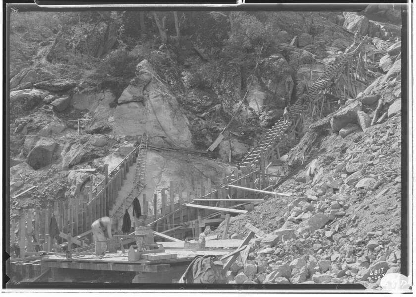 Big Creek Powerhouse #8 - Maintenance on large intake for Powerhouse 8 at Dam 5. [low water level in forebay]