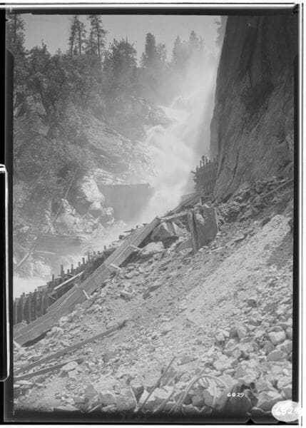 Portal Powerhouse - Temporary flow diversion from 12' pipe [Ward Tunnel]. Flow about 425 cfs..