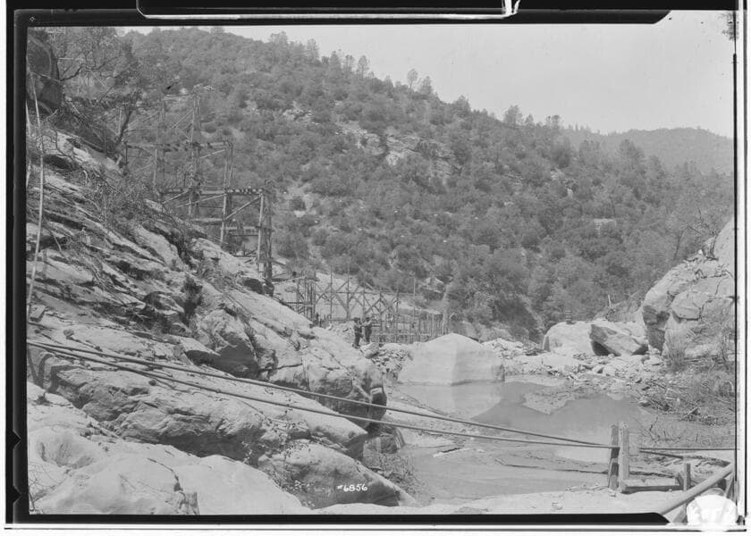 Powerhouse 8 - Framework construction with Steam shovel excavating along side the framing.