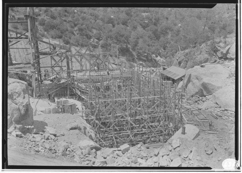 Powerhouse #8 - View of Dam 5 - [Framework being set up for the construction Dam]