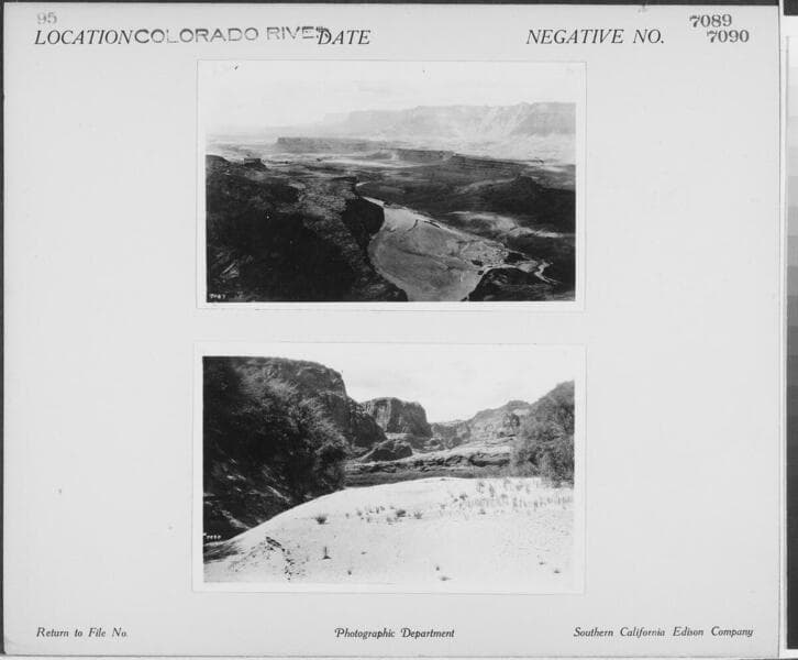 Colorado River - [Colorado River from canyon rim] - [Colorado River from riverbank (SCE 7095) on same photocard]