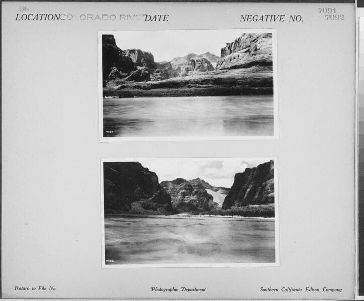 Colorado River - [Colorado River as seen from boat] - [similar shot with steep canyon walls (SCE 7080) on same photocard]