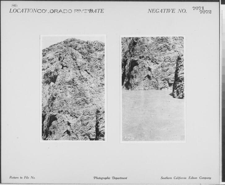 Colorado River - [View of steep canyon wall from as seen from river] - [Colorado River as seen from boat (SCE 7074) on same photocard]