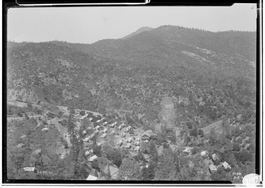 Big Creek Powerhouse #8 - Bird's eye view of Powerhouse #8, penstock and construction camps.