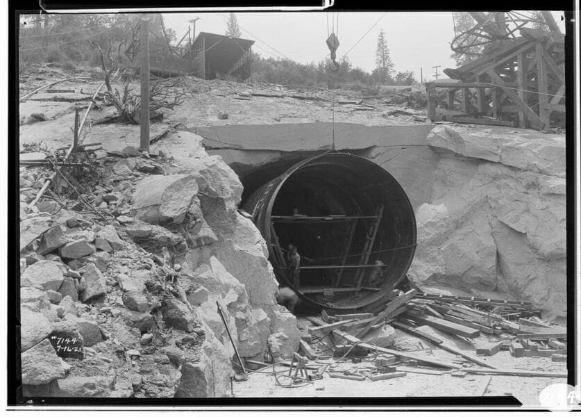 Big Creek Powerhouse 8 - Steam shovel excavating at site of forebay outlet tunnel #8.