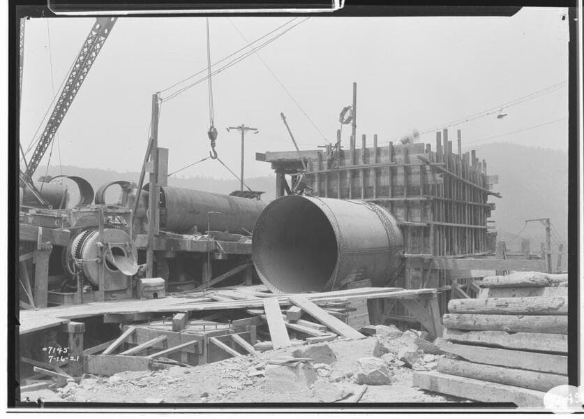 Big Creek Powerhouse #8 - Head of penstock before tying on temporary bypass at forebay.