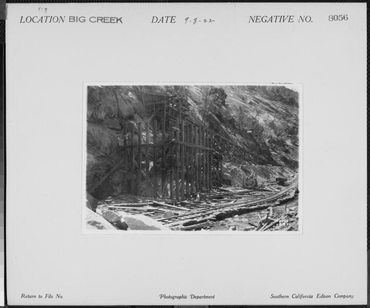 Big Creek Powerhouse #3 - Concrete plant at Dam 6 construction site. River diversion in foreground