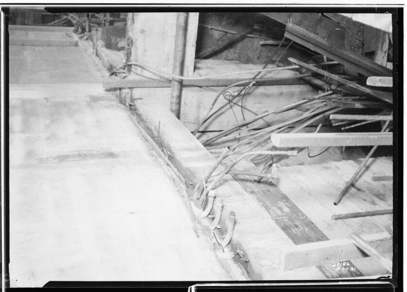 Big Creek - Powerhouse 8 - Break in pressure main. Damage to powerhouse. [this shot shows water damage to the generator room and transformer bay]