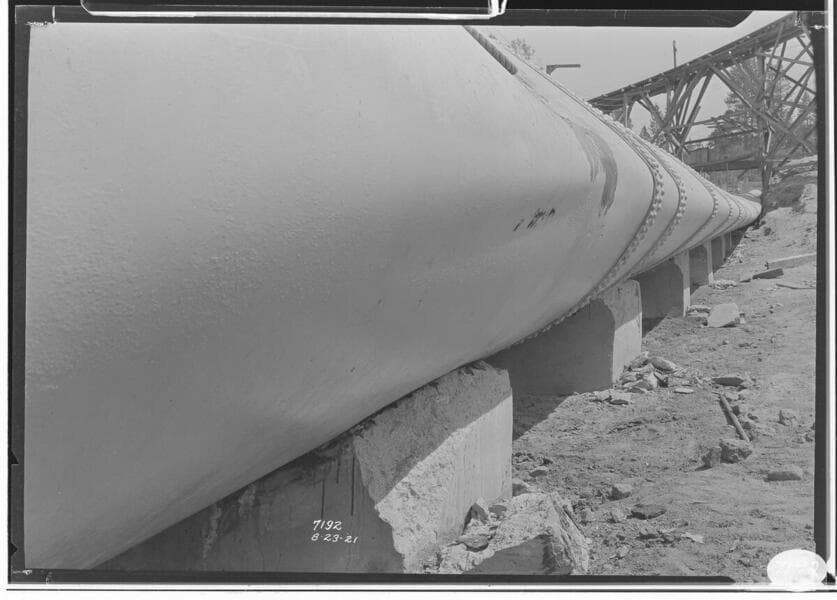 Big Creek Powerhouse #8 - showing shearing of rivets on broken penstock.