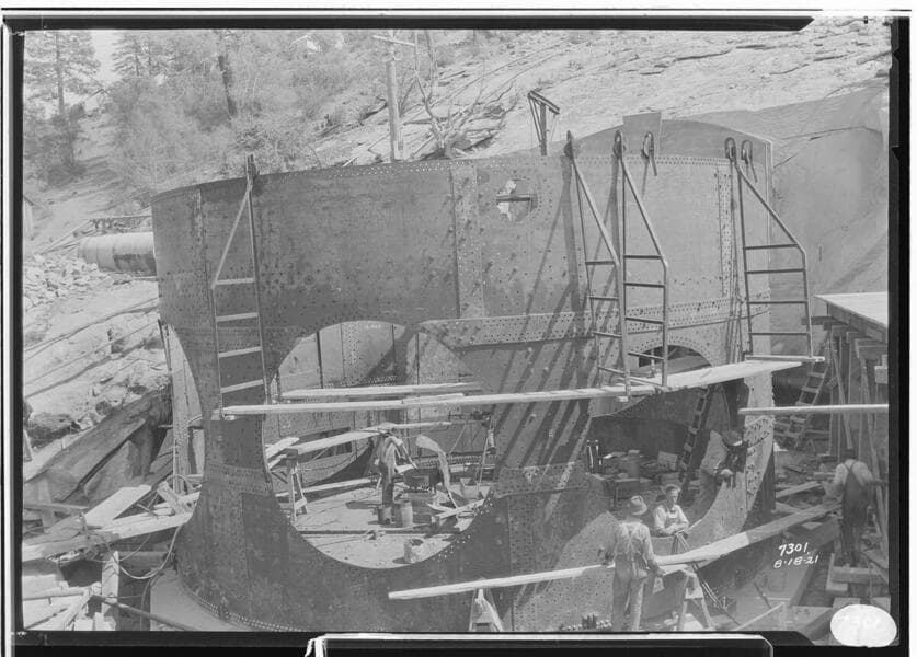 Big Creek - Powerhouse 8 - Temporary penstock bypass & glory hole construction.