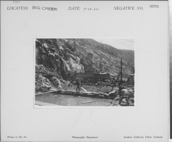 Big Creek Powerhouse #3 - Dam site for Dam #6 - general view of construction for cofferdam and flume.