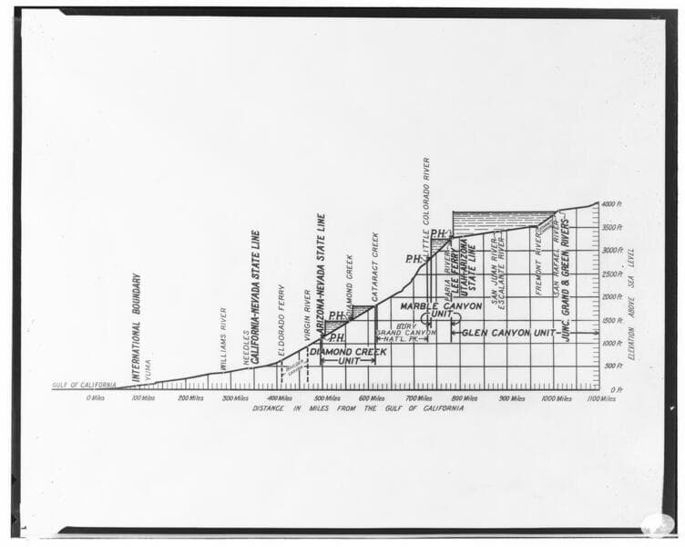 Colorado River - [Graphic profile showing altitudes of proposed hydroelectric projects in the Colorado River Basin].