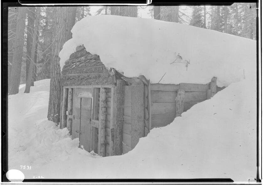 Big Creek, Florence Lake Dam - Rock face Powder Magazine, Camp 60, covered with snow.