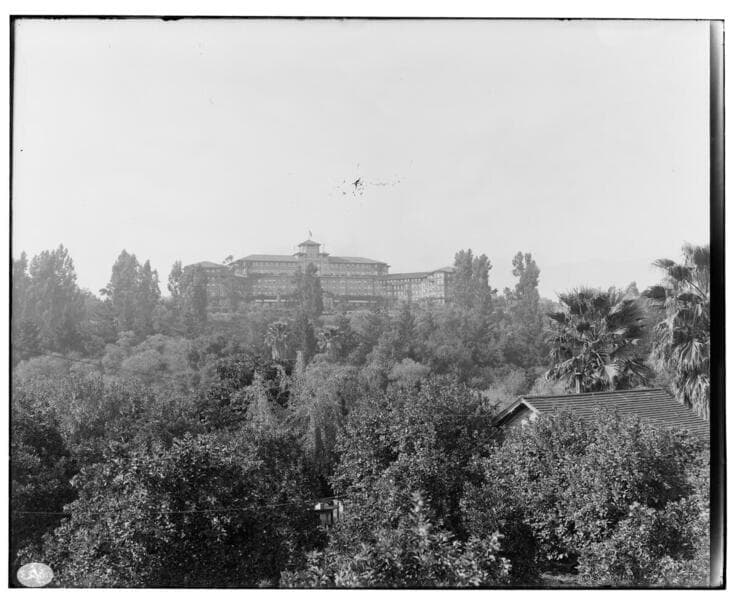 B1.1 - Buildings Miscellaneous - Huntington Hotel with mountains in background.