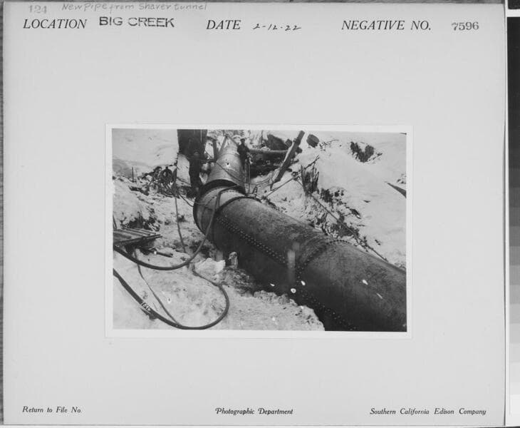 Big Creek Powerhouse #8 - New pipe from Shaver tunnel drift to connect with old No. 2 tunnel at Adit #8.