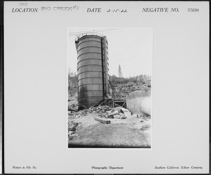 Big Creek Powerhouse #8 - Men working on the steel forebay for Powerhouse 8