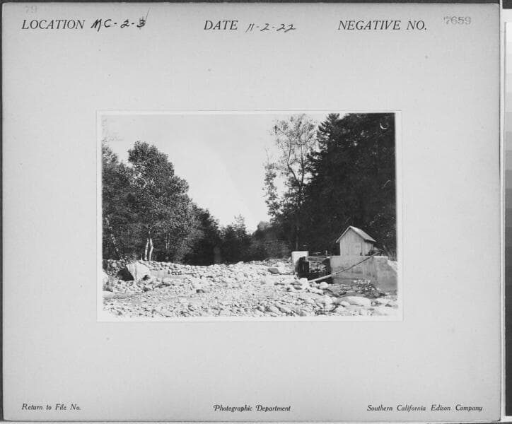 Mill Creek 1, 2&3 Powerhouse - Headworks for Mill Creek #3, showing dam & intake