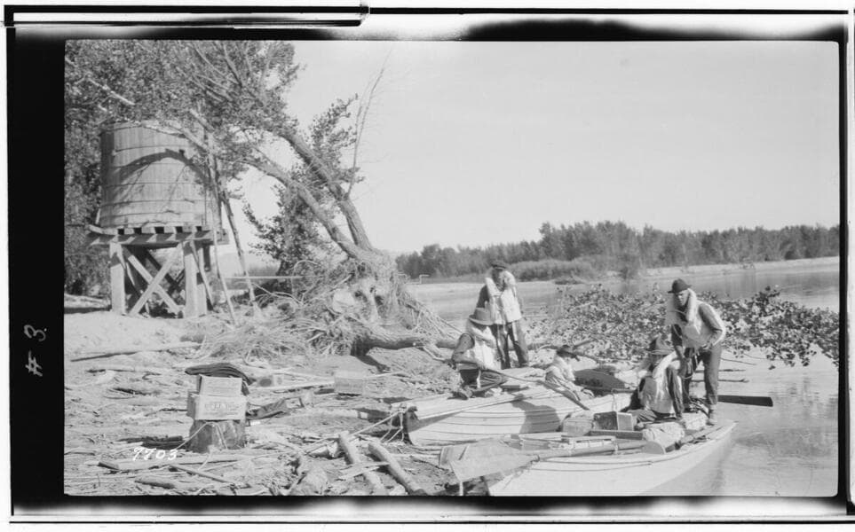 Colorado River Survey #2 - Expedition boats on shore at Green River, Utah