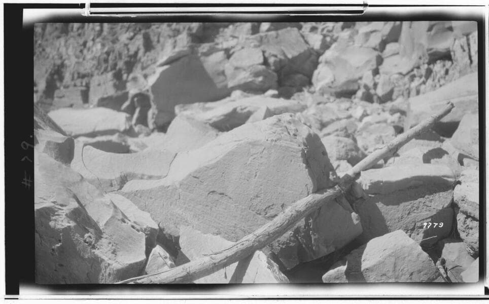 Colorado River - Rock monolith ["Hoodoo"] in river.