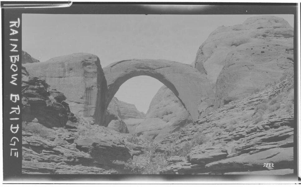 Core drilling at Kelly Dam site, Arizona and Nevada abutments, Rainbow Bridge natural arch; survey photographs and gauging stations at Herminghaus Ranch.