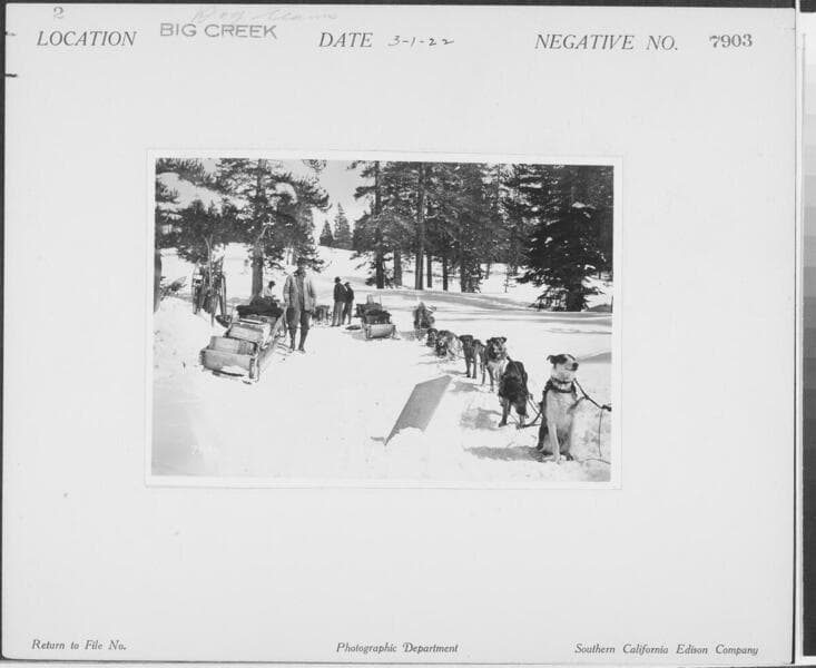 Big Creek Dog Teams - Sled dogs [with sleds in snow at Big Creek]