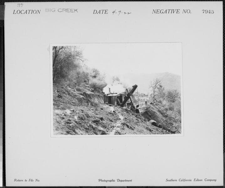 Big Creek Powerhouse #3 - Tunnel #3 outlet portal - excavation for manifold - Camp 37 in background.