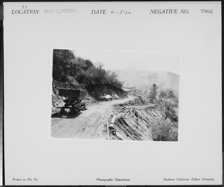 Big Creek Powerhouse #3 - Portion of Project 3 Road construction between tunnel outlet (Camp 37), and the SJ&E RR junction (Camp 39) which was constructed in soil covered slopes.
