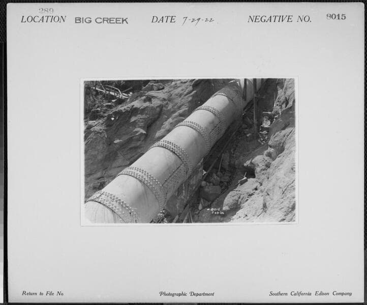 Big Creek Powerhouse #8 - Crack in joint #115, Big Creek #8 penstock (relative position).