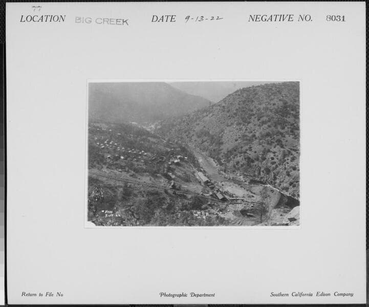 Big Creek Powerhouse #3 - Bird's eye view of Dam 6 construction site.
