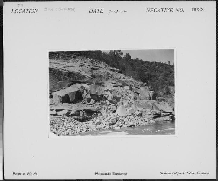Big Creek Powerhouse #3 - South bank [abutment] San Joaquin River at location for Dam #6.