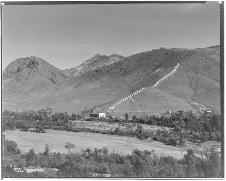 Kern River No. 3 - Powerhouse and penstock line from downstream.