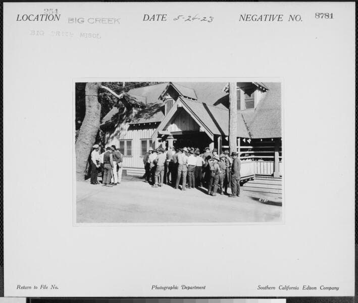 Big Creek, Miscellaneous - Exterior shot of Mess Hall at Cascada [with 13 people lined up outside.]