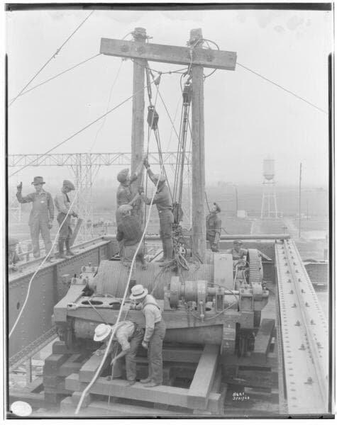 Laguna Bell Substation - Raising Crane onto station building.