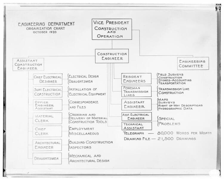 C1.1 - Charts miscellaneous - Organization chart - Employees in the Engineering Department. [1912 to 1922]