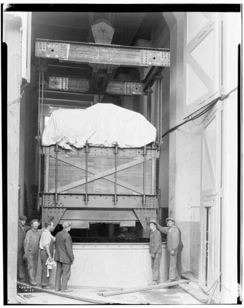Eagle Rock Substation - Core being lowered into transformer shell.