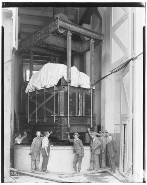 Eagle Rock Substation - Core being lowered into transformer shell.