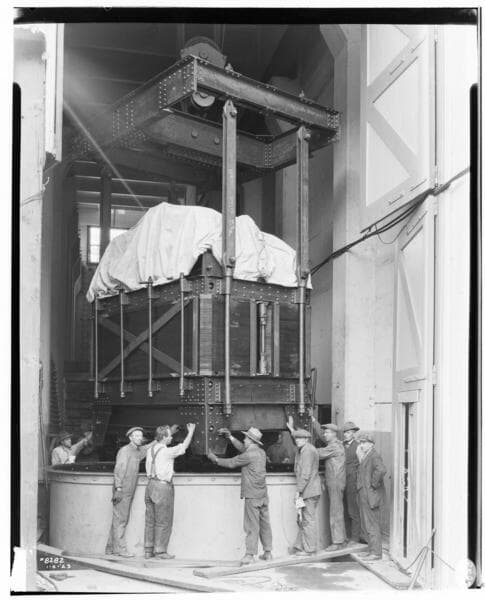 Eagle Rock Substation - Core being lowered into transformer shell.