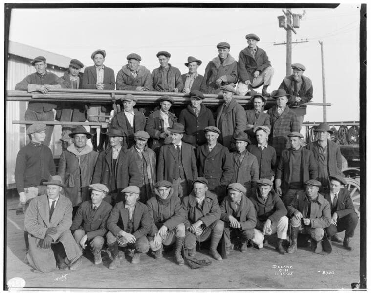 The "Overhead Gang" and their autos parked in front of the Redondo Substation.
