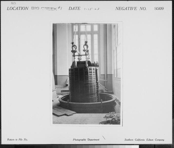 Big Creek #1 - 220 kV Transformer core being lowered into tank.