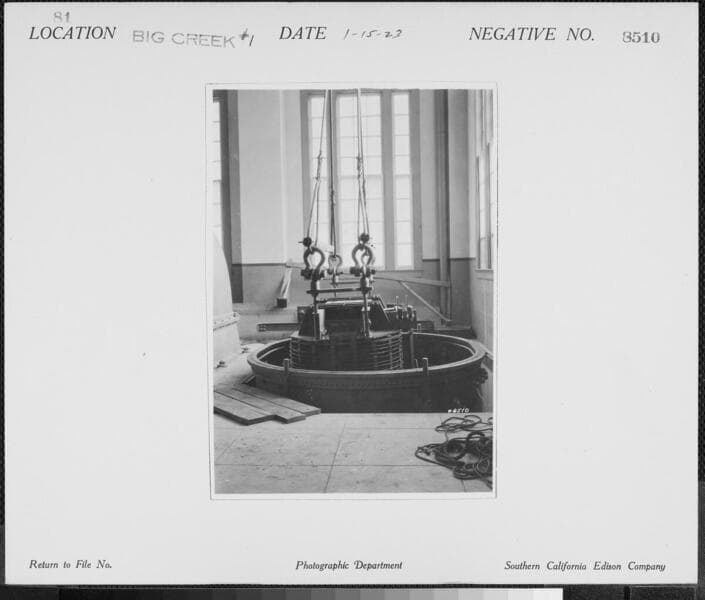 Big Creek #1 - 220 kV Transformer core being lowered into tank.
