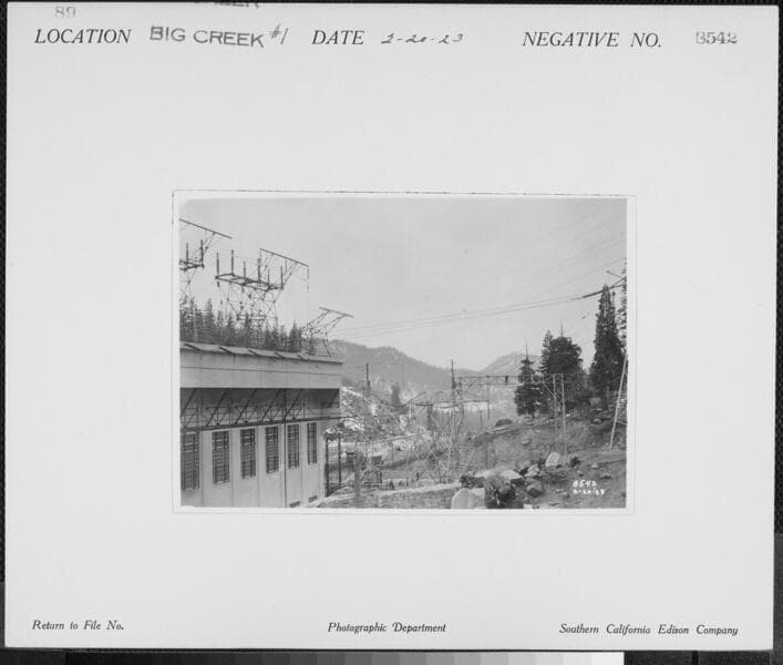 Big Creek - Powerhouse #1 (part 1) [PH 1 Scenic, generator floor, exterior with extension, generator repairs, Unit 3 penstock construction, riveting penstock, transformer rack, substation, exterior before extension, extension construction, hoist house interior, assembly of Units 3 & 4, change to 220 kV transformers.]